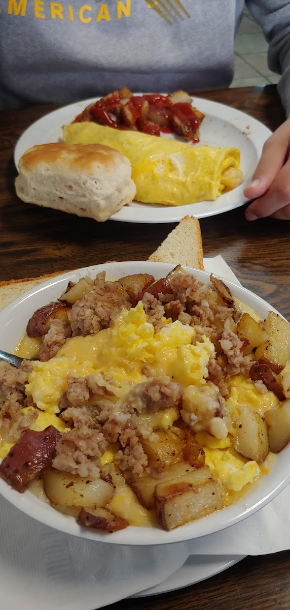 Being from NJ mainly (10 years in upstate NY), eating out for breakfast in this area (eastern NC) doesnt have many good options. No Diners. Not many greasy spoons. I asked a nice lady in town where she recommended for breakfast and she said Shep's. Flat top right there behind the counter slinging eggs and all the usual breakfast stuff. The servers were polite and knew their gig. And most importantly, the food was great. Nice thick toast. He deep fries the par cooked (or fully cooked) potatoes and they come out great. I had smoked briscuit and eggs over easy. Peppers and onions in my potatoes, which went on at the end cause of the deep frying. It was all very good. Briscuit could have been a bit more tender but it's a breakfast house, not a BBQ joint. Next time I'll try the corned beef hash. Looking forward to it.
