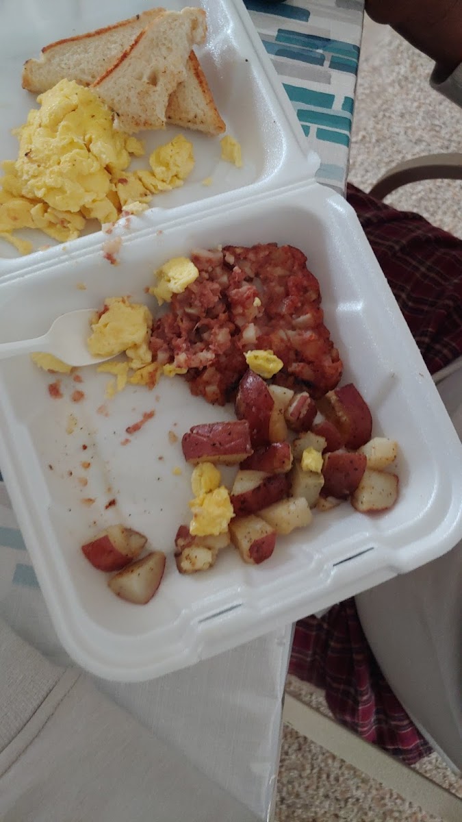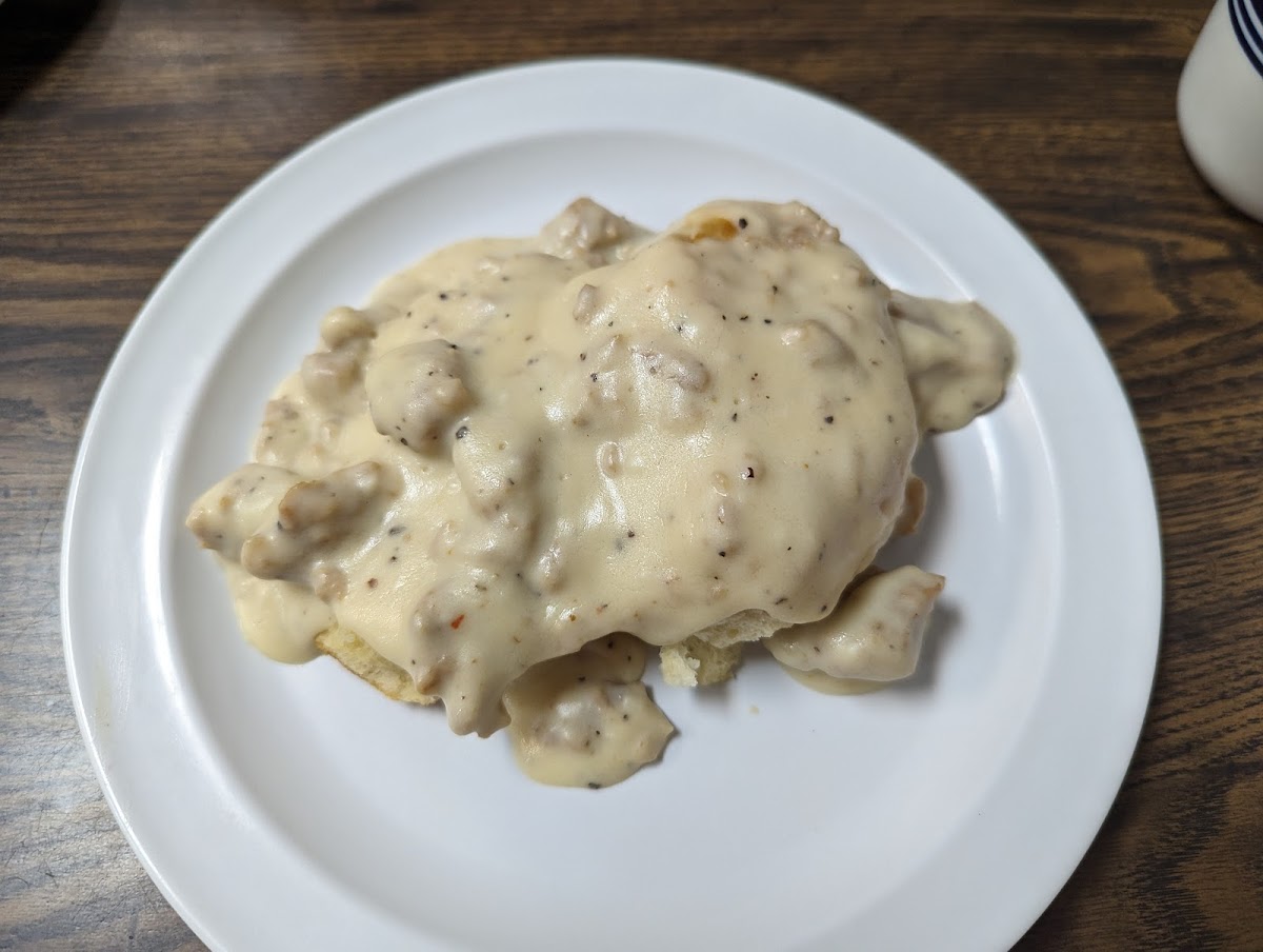 We ate breakfast and it was actually pretty good, except the biscuits were hard as a rock. It's a shame because the brisket was absolutely delicious. The gravy was also good.